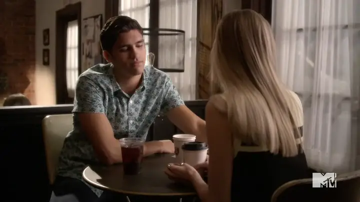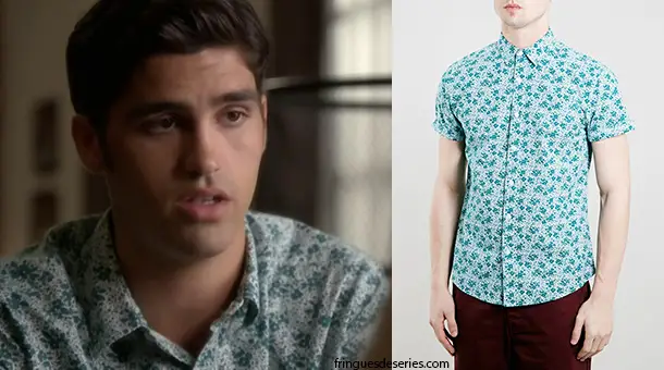 Jake Fitzgerald (Tom Maden) n’est pas forcément un bon garçon dans Scream, mail il aime les chemises à fleurs. Ici il porte une chemise Topman dans l’épisode 5 de la saison 1.