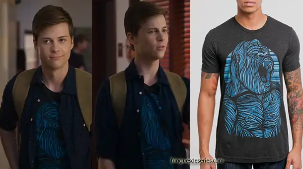 Noah Foster (John Karna) continue sa petite enquête dans Scream saison 2 épisode 2. Il porte un gorille hurlant sur son t-shirt. On le tr