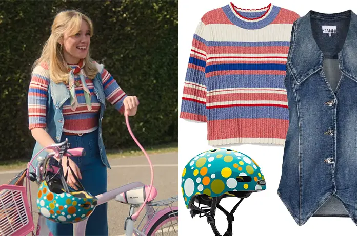 A la main, elle tient son casque à vélo que l’on trouve ici ou ici