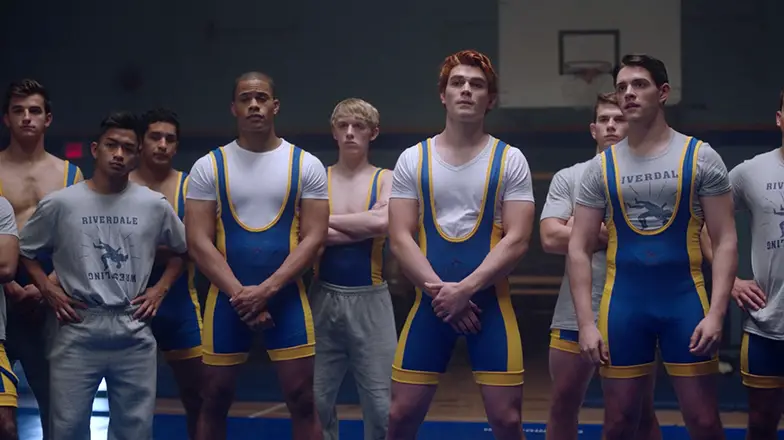 Dans l’onzième épisode de la saison 2 de Riverdale, Archie Andrews (KJ Apa) doit se rapprocher du père de Veronica, à la demande du FBI. Il décide de s’inscrire dans l’équipe de lutte du lycée, le sport dans lequel monsieur Lodge excellait. Cela permet au réalisateur de l’épisode, le fameux Gregg Araki de filmer des sportifs en combi de lutteurs.
