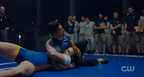 Dans l’onzième épisode de la saison 2 de Riverdale, Archie Andrews (KJ Apa) doit se rapprocher du père de Veronica, à la demande du FBI. Il décide de s’inscrire dans l’équipe de lutte du lycée, le sport dans lequel monsieur Lodge excellait. Cela permet au réalisateur de l’épisode, le fameux Gregg Araki de filmer des sportifs en combi de lutteurs.