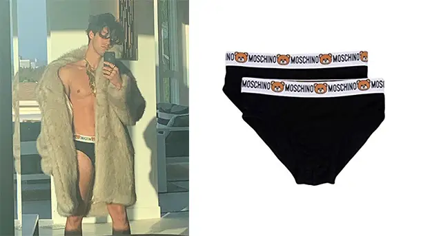 Dans son dernier post Insta, Cameron Dallas pose en manteau de fourrure et en slip Moschino. On peut en trouver ici