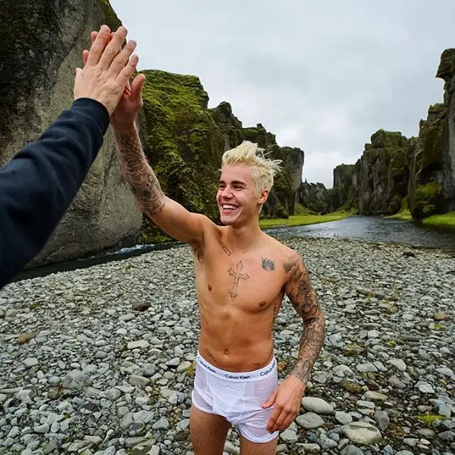 Calvin Klein mouillé, Justin Bieber a l’air de savourer la nature islandaise. La photo a plus aux fans du chanteur canadien : plus d’ un millions de likes sur son compte Instagram. Joli coup de pub également pour les boxers blancs Calvin Klein.