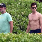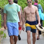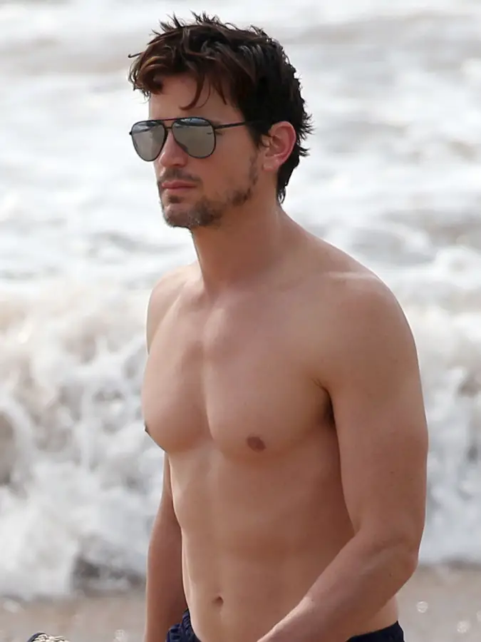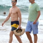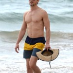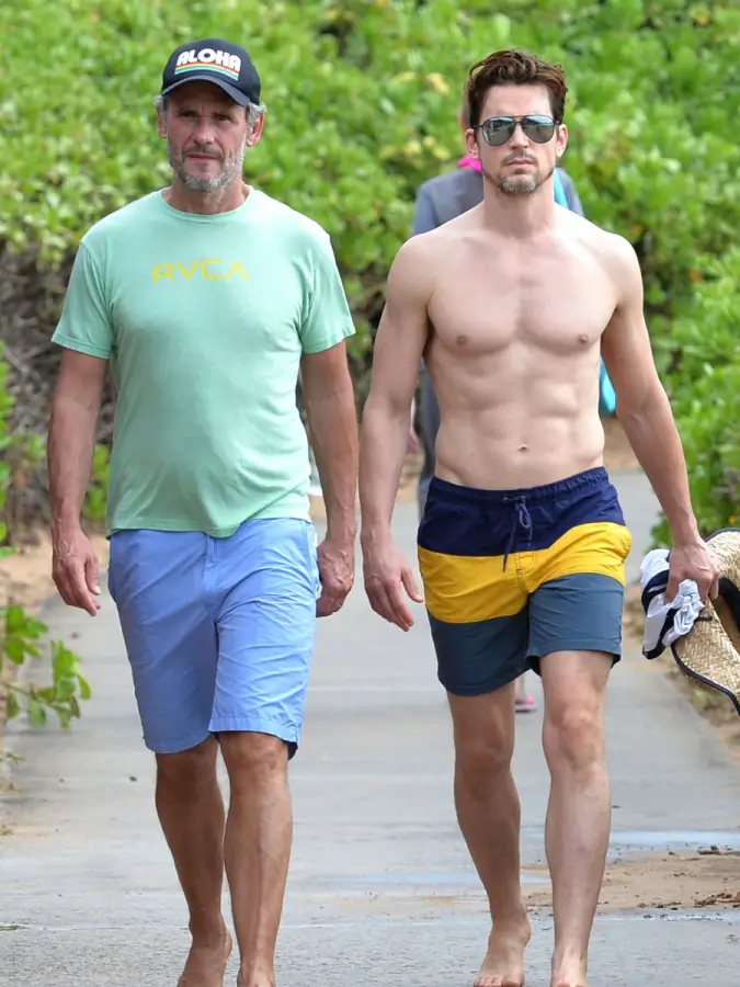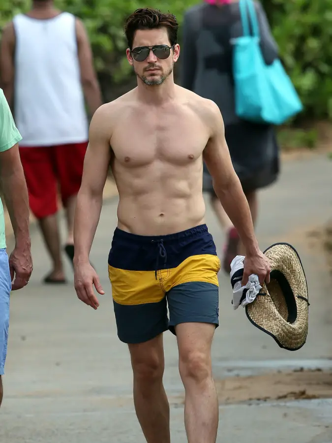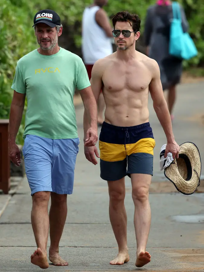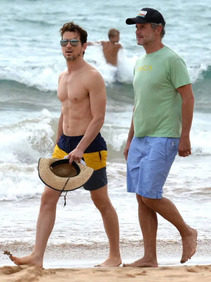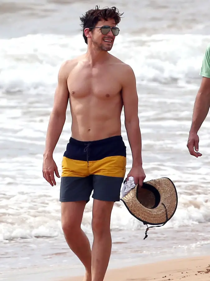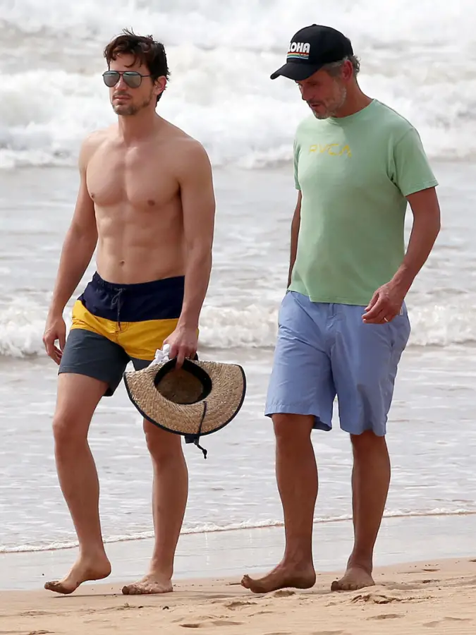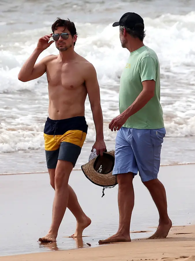 Chapeau de paille, lunettes solaires et short de bain Deus Ex Machina, voilà le look adopté par Matt Bomer pour se balader ave