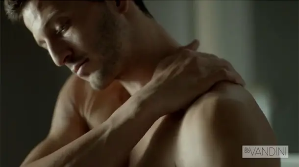 Mais Michael Lewis est aussi mannequin, et dans ce contexte, il a donné beaucoup de sa personne pour une publicité allemande. Dans un spot assez amusant, il essaie les produits Aldo Vandini qu’il a sans doute piqués à sa copine et qui conviennent très bien à son corps viril.