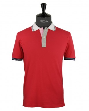 ALTEA. Polo rouge col blanc. -30 %