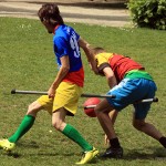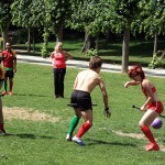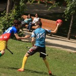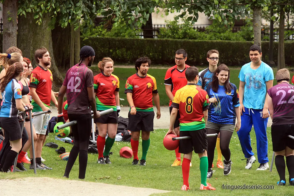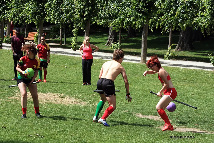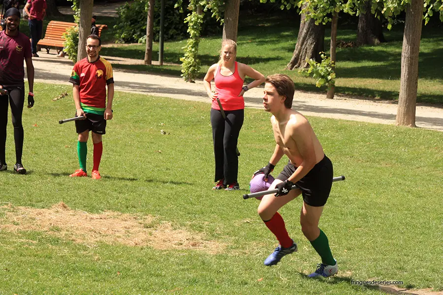 Une balade dans le parc du Cinquantenaire à Bruxelles permet de rencontrer des jeunes gens s’adonnant au plaisir du Quidditch. Des tenues très colorées, des chaussettes de couleur différente et des situations parfois cocasses avec ce « balai » coincé entres des cuisses moldues.