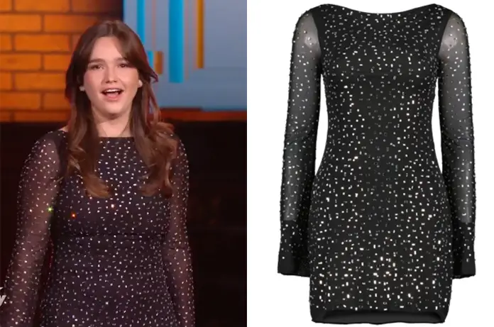 Lily portait une robe noire à strass pour retrouver Arnaud, son petit ami, sur le prime de la Star Academy, ce 21 novembre.
