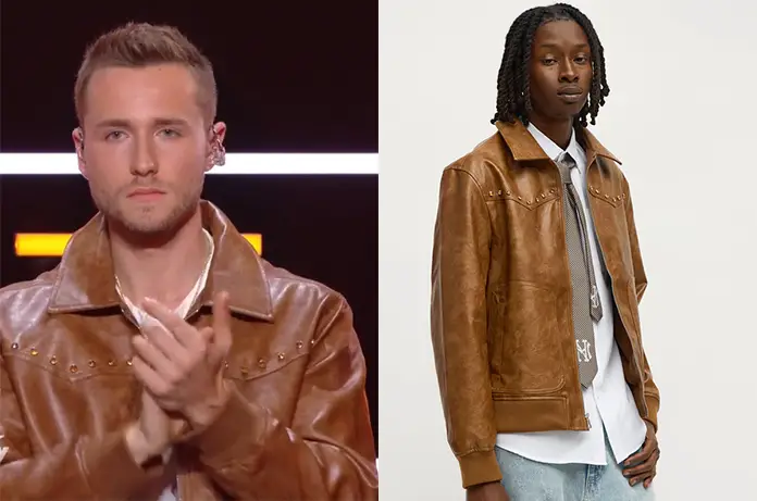 Plus tôt dans l’émission, il avait revêtu une veste western marron, en faux cuir.