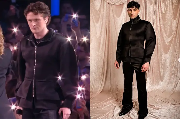 Bastiaan portait une veste plutôt originale sur le prime de la Star Academy, le 20 décembre. Celle-ci joue sur une coupe structurée, un zip frontal affirmé et un col montant. Une veste très urbaine qui a peut-être contribué à sa victoire face à Léa.