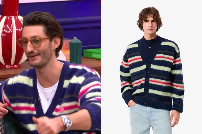Le comédien portait un gilet à rayures que l’on trouve ici, en promo.