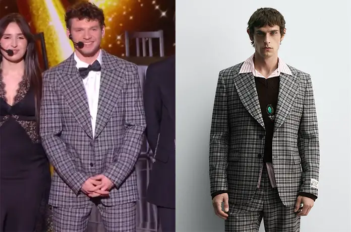 Théo portait ce costume à carreaux pour le bal de la promo dans le musical créé à la Star Academy, ce 5 décembre, sur TF1.