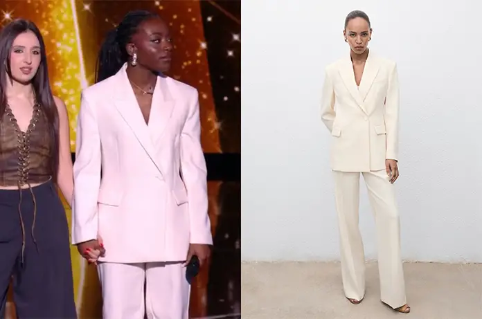 Comme la semaine dernière, Sarah portait un tailleur blazer croisé sur le plateau de la Star Aacdemy (TF1) ce 17 janvier.
