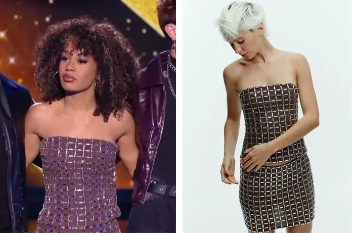 Léane ne rentrera donc pas au château à l’issue du prime de la Stac Adademy ce 21 novembre. La jeune femme portait un ensemble composé d’une jupe taille basse avec application de brillants à contraste et d’un top confectionné en tissu mesh, au décolleté droit et aux épaules dénudées, paré de la même application de brillants.