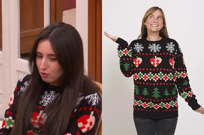Ambre a reçu un pull noir, avec des flocons et des sapins.