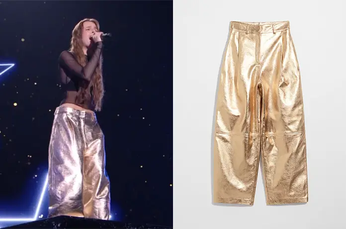 C’était décidément le prime d’Anouk ce 29 novembre à la Star Academy : une victoire sur la battle, un autoportrait émouvait et félicité par tous. L’or lui a porté chance. Elle portait effectivement un pantalon en cuir doré. Il est sold out chez And other stories.