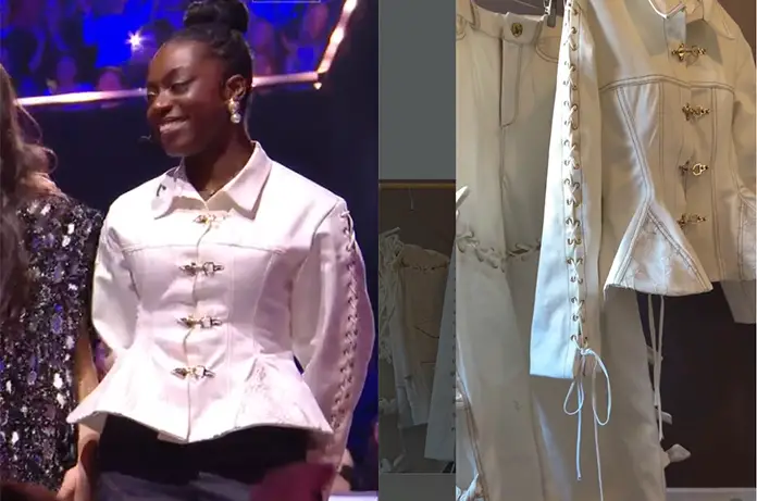 Lors de la soirée finale de la Star Academy du 7 février 2026, Sarah a attiré les regards des téléspectateurs avec l’un des looks les plus architecturaux de cette finale. Loin des paillettes classiques, elle a misé sur une silhouette blanche sculpturale qui allie force (épaules marquées, fermetures métalliques) et délicatesse (laçage souple, bas évasé, blancheur). Une guerrière romantique, en quelque sorte.