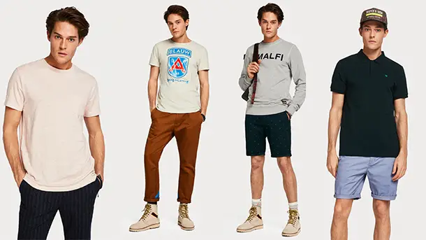 Période de soldes estivale oblige, nous vous proposons aujourd’hui 4 looks de vacances stylées portés par le modèle Cesar Casier, égérie, notamment, de la marque Scoth &Soda.