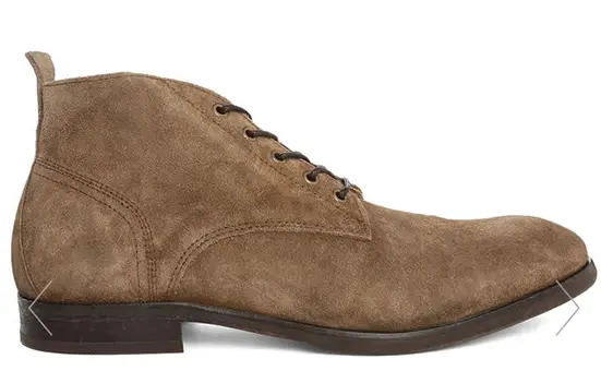 Si vous flashez sur ses boots, il s’agit du modèle Cooke de la marque Hudson, en promo chez Menlook.