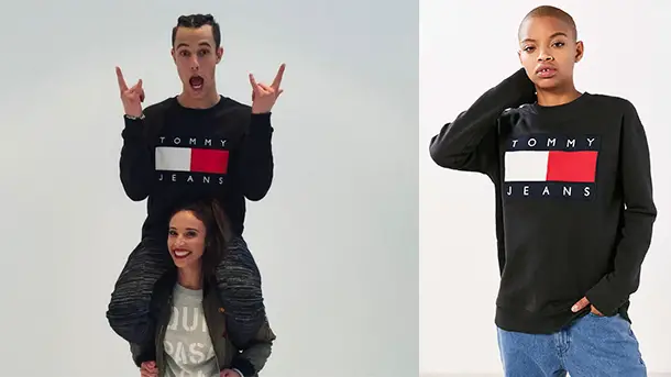 Cameron Dallas sur le dos de sa sœur Sierra… et sur son propre dos, un sweatshirt Tommy Hilfiger.