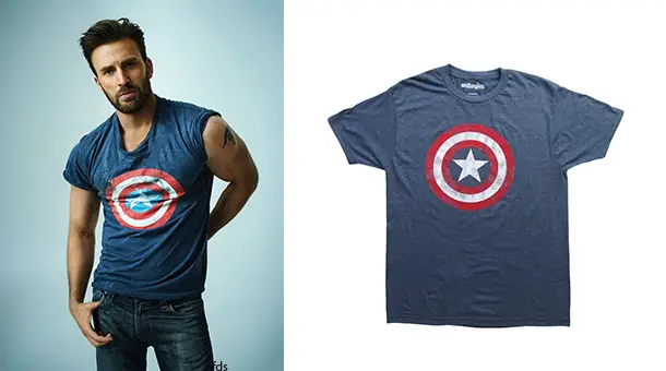 Chris Evans pose dans deux t-shirts Captain America, le héros qu’il défend au cinéma devant l’objectif de Peggy Sirota. Les photos sont extraites du magazine Rolling Stone. Lire l’article ici.