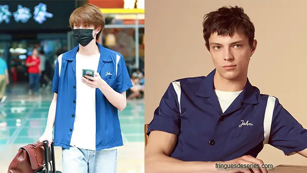 Photo qui remonte au mois d’août : Darren Chen 官鴻 à l’aéroport en chemise Sandro. On la trouve ici