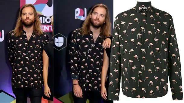 On vous le disait ici, le motif flamant rose a la cote. Jack Lawless du groupe DNCE le prouve avec cette chemise Saint-Laurent