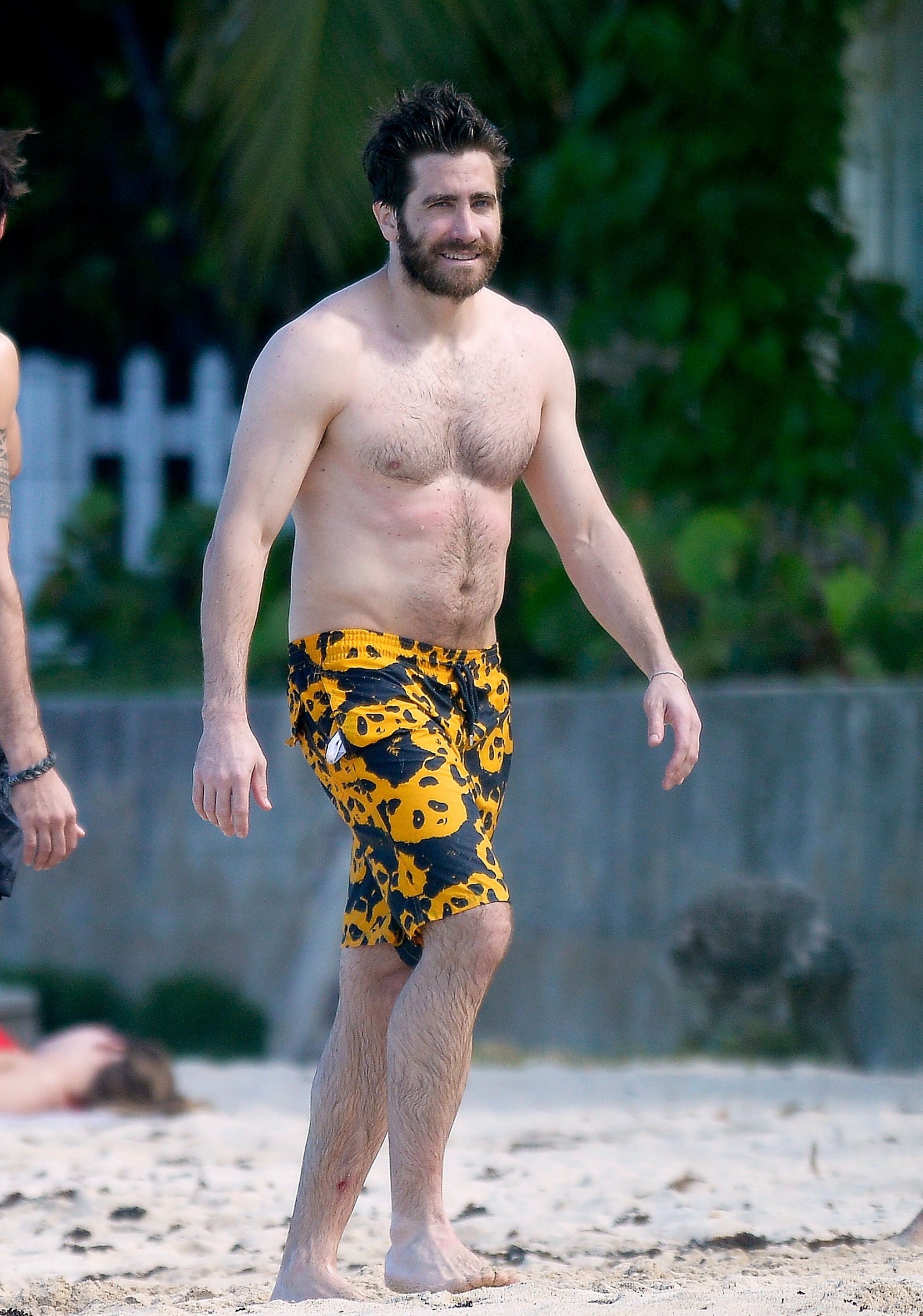 Jake Gyllenhaal fait du surf à Saint-Barth en maillot panda Vilebrequin. Ce qui nous permet aussi de profiter de l’acteur shirtless