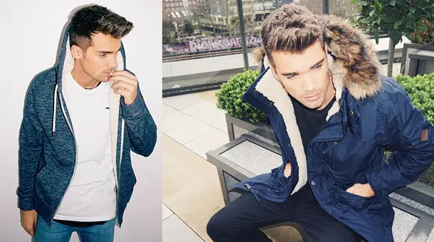 Josh Cuthbert du groupe Union J s’habille en Hollister cet hiver. On le voit, sur son compte Instagram avec un pull zippé et une parka bleue de la marque américaine.
