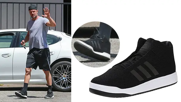 Josh Duhamel is seen leaving the gym in Los Angeles with Adidas Veritas Mid Canvas sneakers. The shoes are available here.