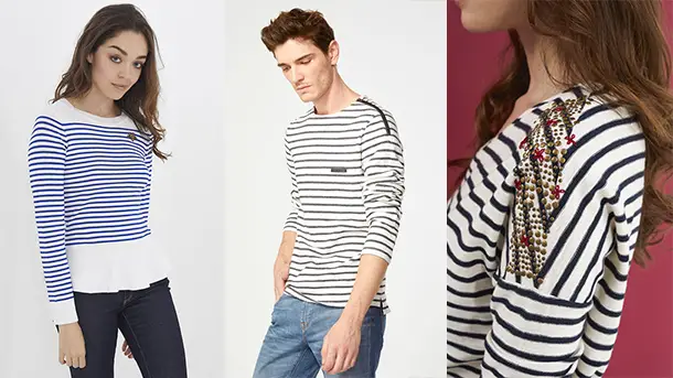 Depuis Coco Chanel qui popularisa la marinière au début du 20e siècle à Deauville, le vêtement est resté iconique jusqu’aujourd’hui. On peut l’aimer le plus classique possible ou alors détourné. IKKS n’échappe pas à la règle de la customisation du modèle. Voici une sélection de nos préférés. Et période de soldes oblige, la plupart bénéficient d’une réduction plutôt intéressante.