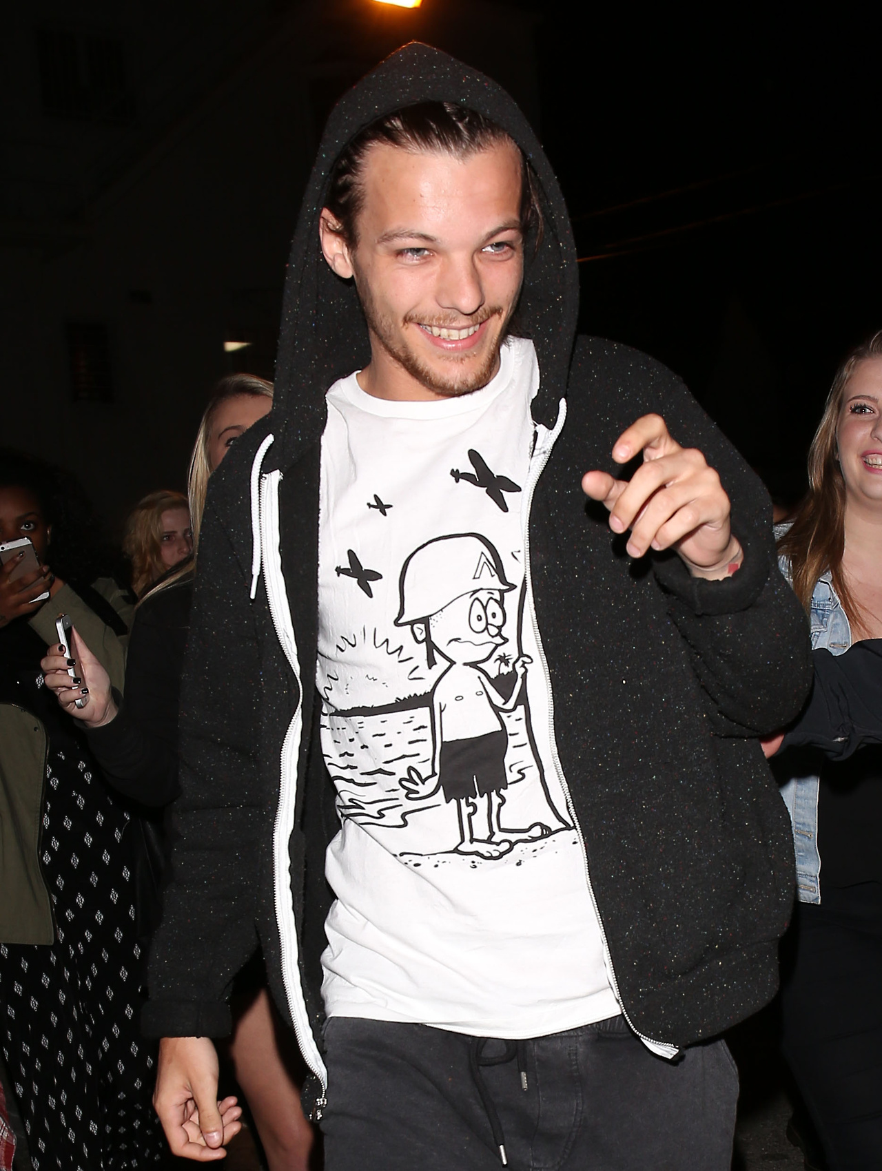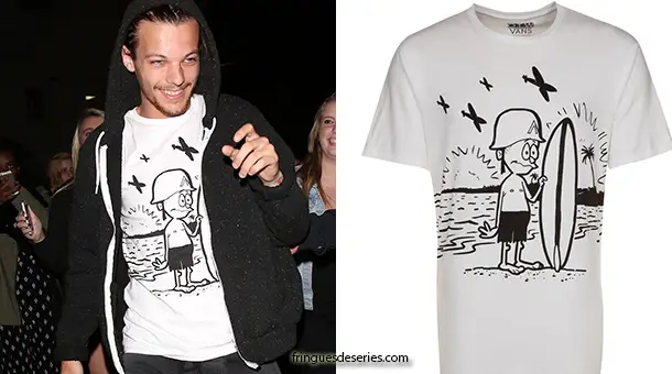 On a vu hier Louis Tomlinson sortir de Shamrock, un tatoueur de Los Angeles. On ne connait pas encore son nouveaus dessin, en espérant tout de même qu’il ne ressemble pas au dessin de son t-shirt. Il s’agit d’un t-shirt Vans disponible ici. Son jogging est signé Topman, disponible ici.