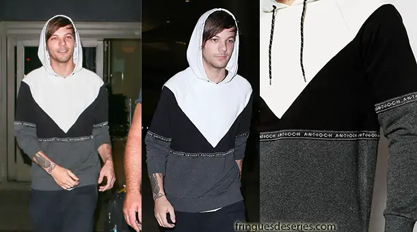 Louis Tomlinson portait un sweat Antioch pour débarquer à Lax, mardi soir.