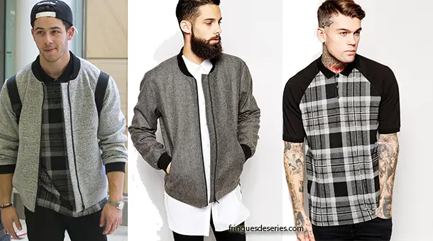 Un bomber gris, avec col et poignets contrastants.