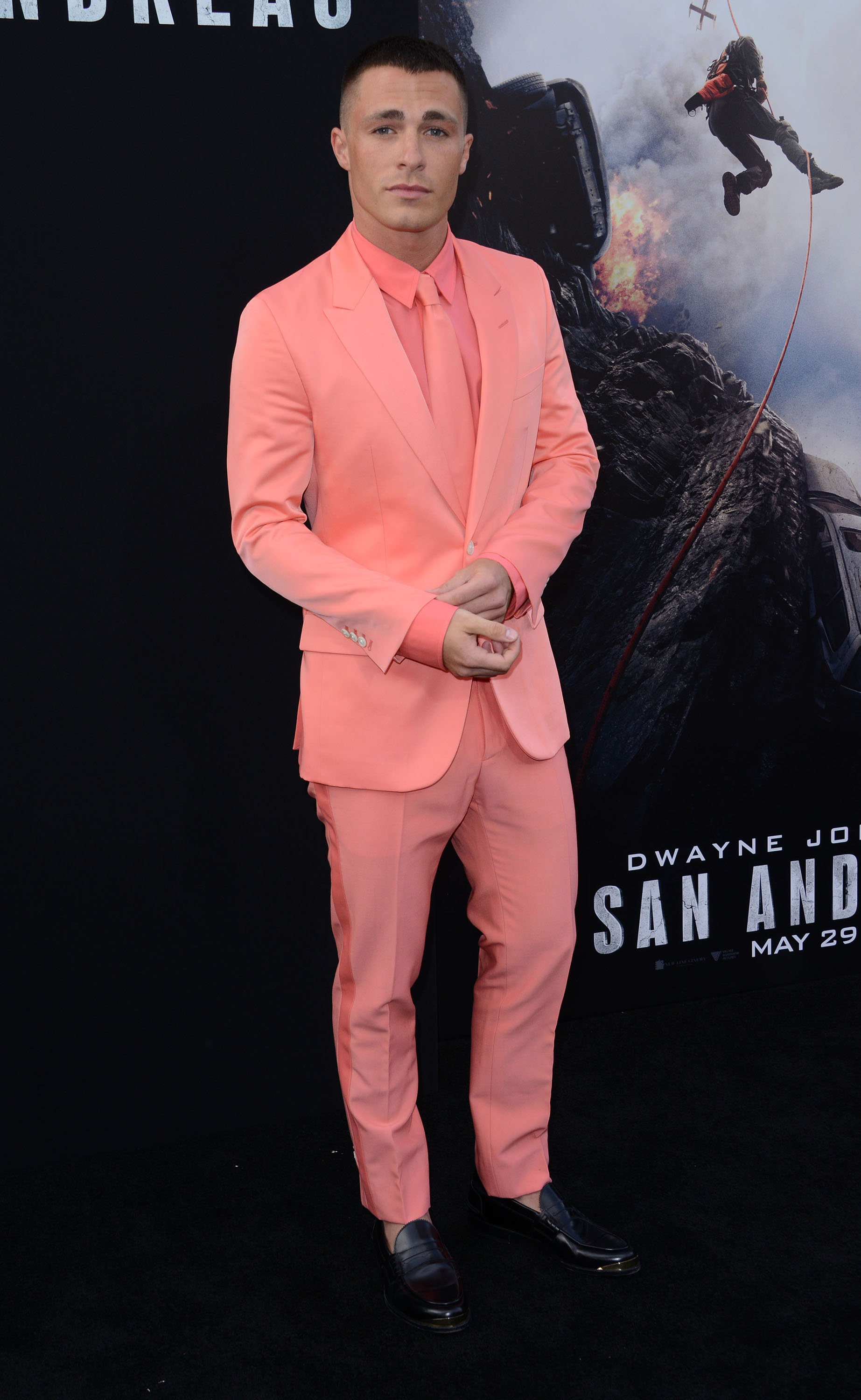 Fin des vacances européennes pour Colton Haynes. Le voilà rentré à Hollywood, notamment pour faire la promo de San Andreas, le film-catastrophe dans lequel il joue. ET pour la première, hier, au théâtre chinois, il n’a pas hésité à se faire un total look rose.