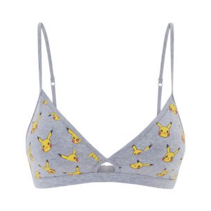 Soutien gorge gris chiné forme triangle imprimé Pikachu avec empiècement au niveau du décolleté. Sans armature. 12,95€