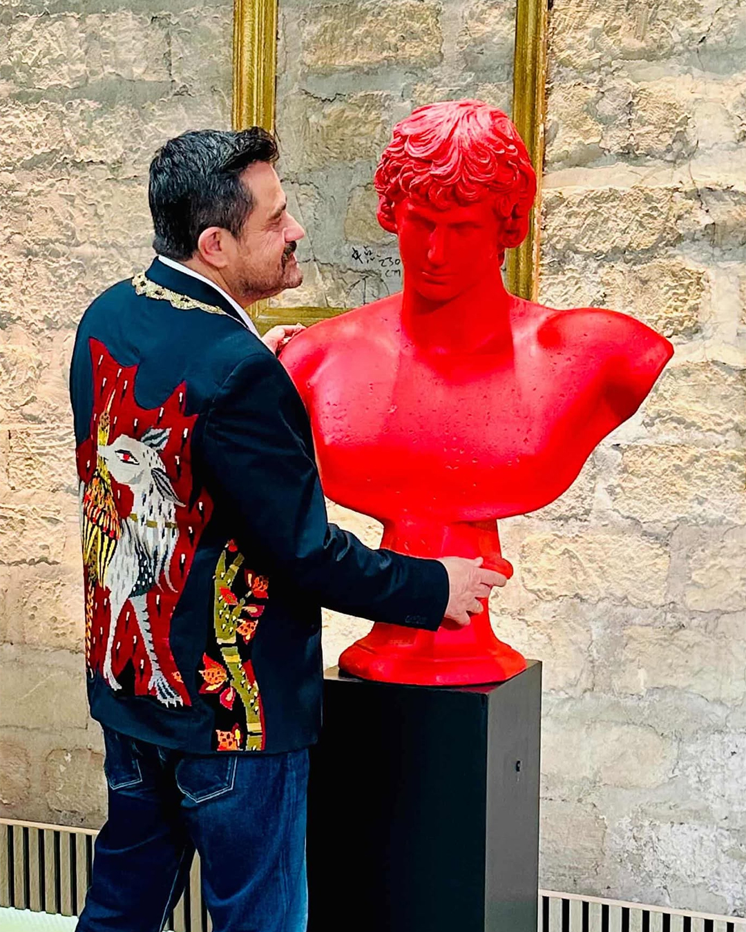 Pour ses looks très assumés, Laurent Fernandez s’est entouré des bonnes mains : celles de La Roulotte des Arches. Ce duo de créateurs passionnés s’est fait une spécialité de l’upcycling, cet art de transformer l’existant pour en faire de l’exceptionnel (c’est quand même plus joli que recyclage).