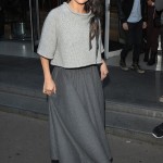 Elle avait choisi une tenue de la collection automne 2015. Crop top et large jupe.