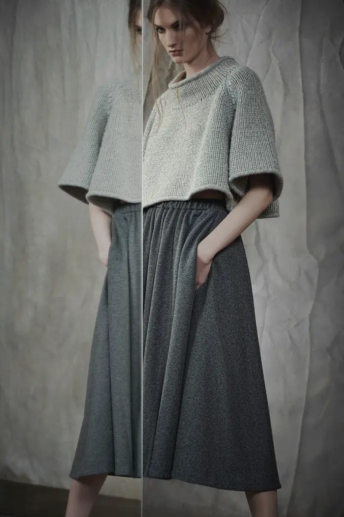 Elle avait choisi une tenue de la collection automne 2015. Crop top et large jupe.