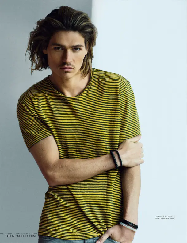 Will Peltz est une jeune acteur et modèle américain, très photogénique, vu récemment dans CSI : Cyber. Mais il fait également la couv’ du magazine Glamoholic du mois; dans ce même numéro, il pose devant l’objectif de Stephen Busken… dans des vêtements très chers : Dior Homme, Saint-Laurent, Vivienne Westwood… mais aussi dans des tenues ALL SAINTS plus abordables.