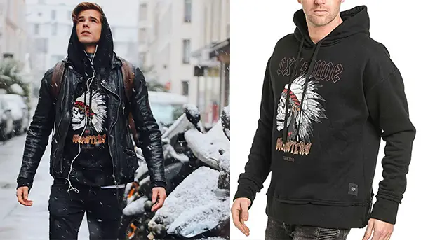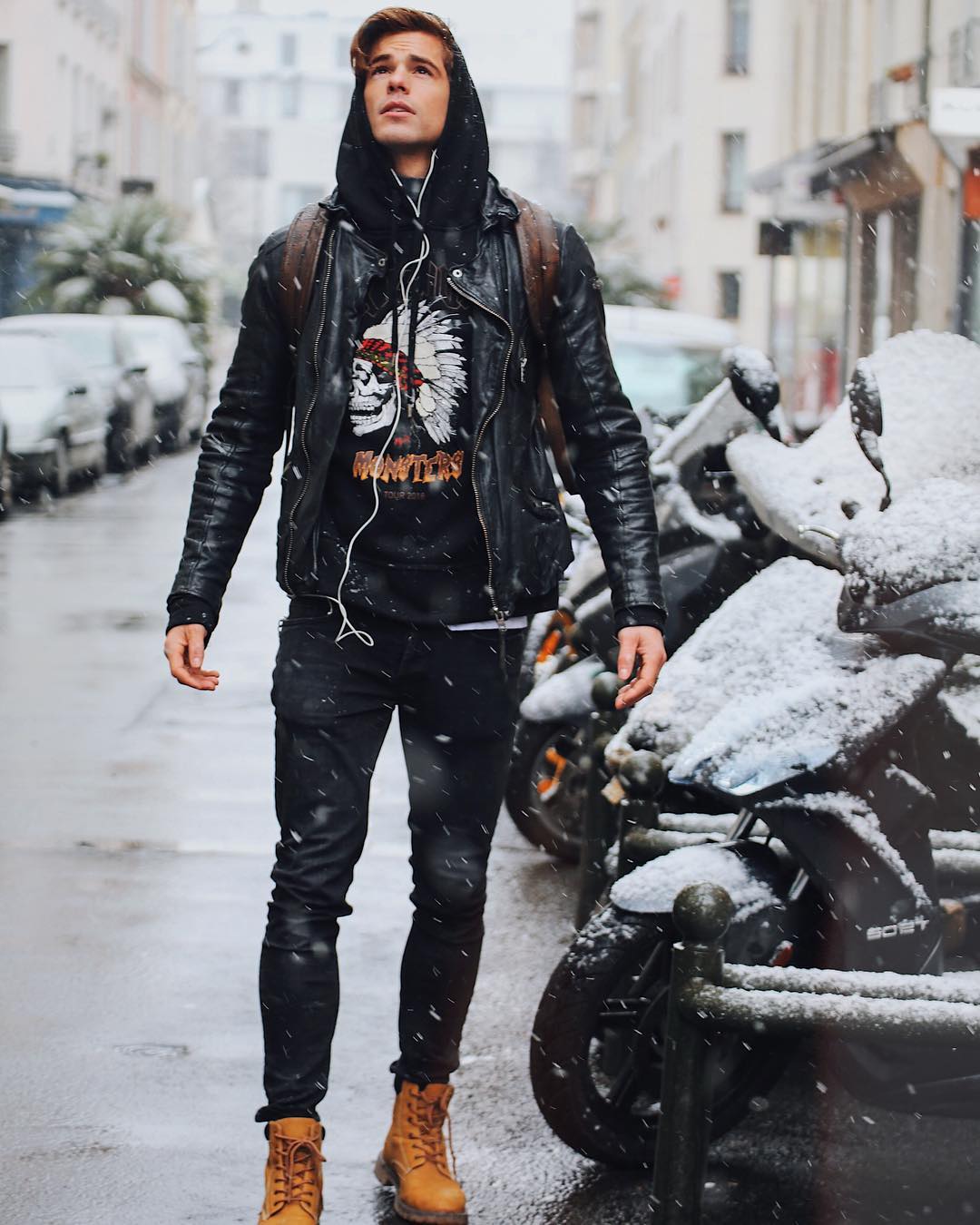 Très belle photo signée Monsieur Kay de Giovanni Bonamy affrontant l’hiver parisien avec un sweat à capuche Sixth June.