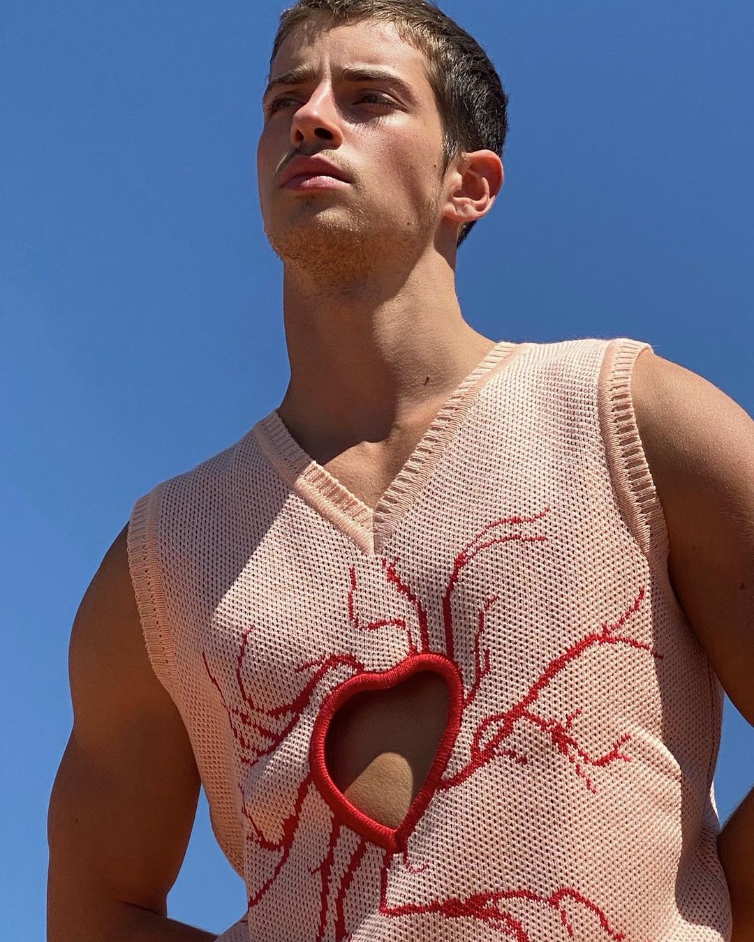 Très original le débardeur que porte Manu Rios, la star de la saison 4 d’Elite sur Netflix. La forme d’un cœur y a été percé laissant transparaitre le vôtre, ou du moins une partie de votre torse. Il s’agit d’un modèle créé par Vladyslav Slobodskoy. Vous pouvez vous le procurer en lui envoyant un message privé (dm) sur son compte Instagram. Le prix de cette pièce mi-coton, mi-laine : 150 €