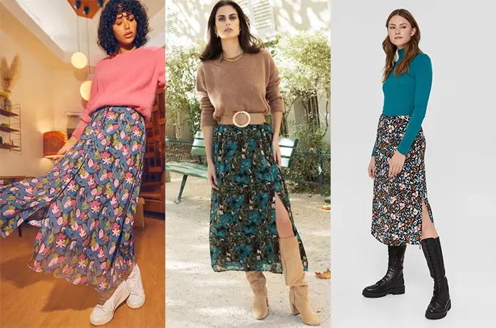 Jupe fleurie, fendue sur le côté, 35€