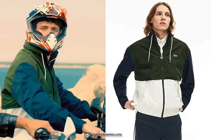 Jacopo (Enrico Inserra) fait la course avec Ale dans Sumertime 1×02 Il porte un blouson colorblock que l’on trouve ici.