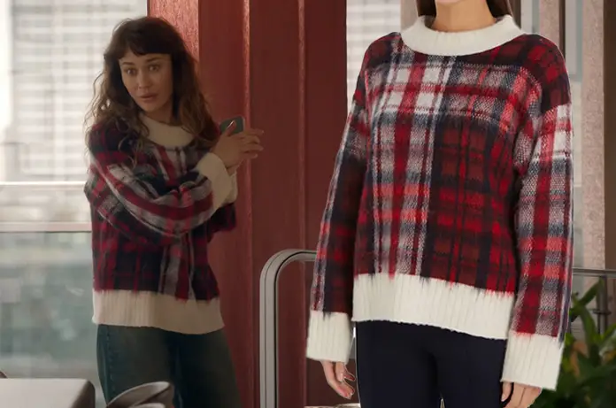 Lena (Olga Kurylenko) devient influenceuse à succès dans Super Mâles épisode 4. Elle porte ce pull ample à carreaux pour fêter ce virage.