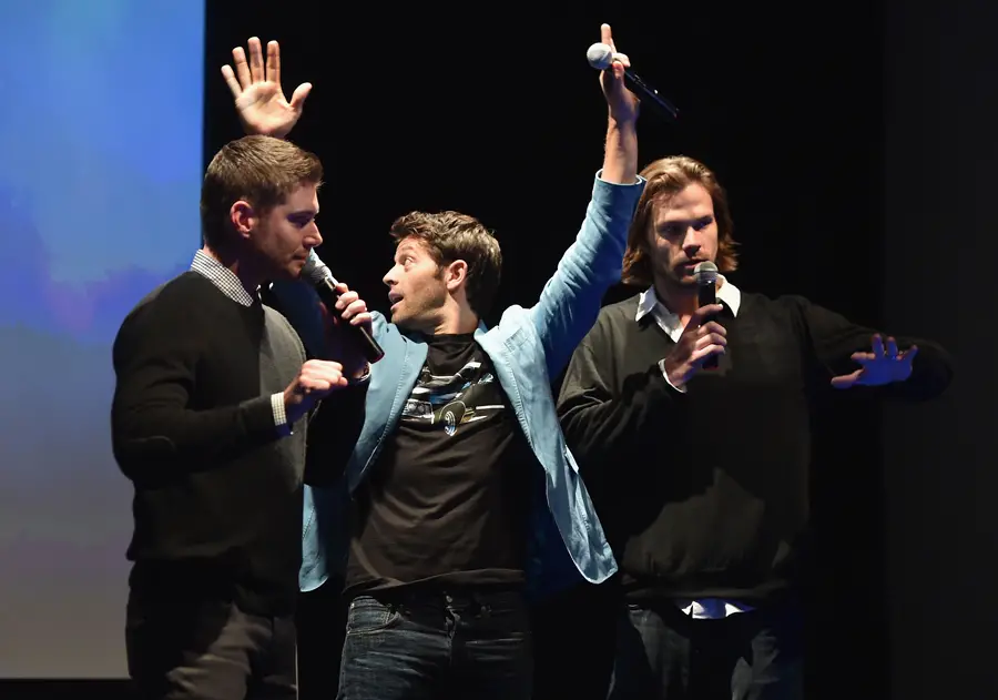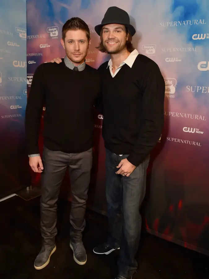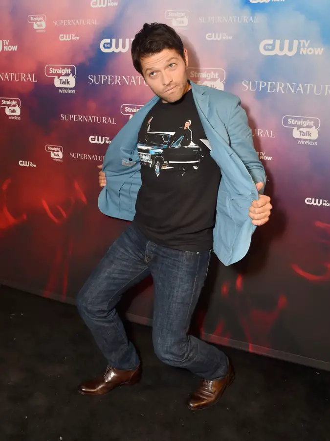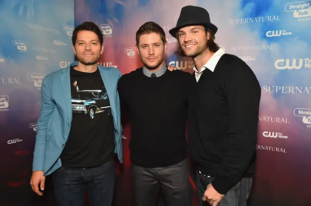 Jensen Ackles, Jared Padalecki et Misha Collins, les stars de Supernatural posent à la fête organisée lundi soir par the CW pour le 200e épisode de leur série. Look plutôt gentil pour les frères de fiction, mais Misha Collins, l’ange Castiel avait préféré un t-shirt à l’image de la série.