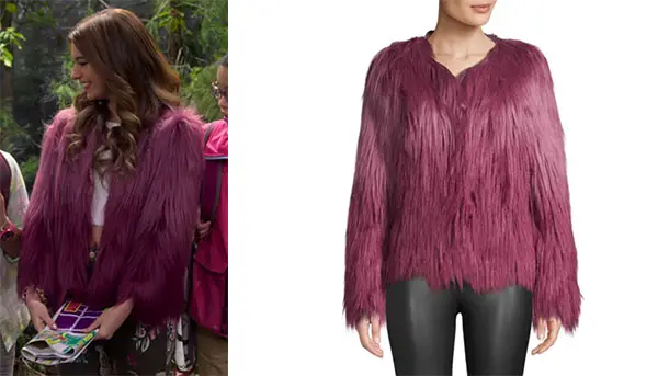 Kaylie Konrad (Bryana Salaz) porte cette veste en fausse fourrure rose dans le premier épisode de Team Kaylie. On le trouve ici