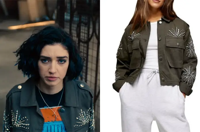 Tilda (Morgan Taylor Campbell) porte cette sympathique veste avec des broderies diverses dans The Imperfects 1×01. On la trouve encore sur eBay