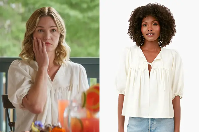 Fringues de sériesLake (The) THE LAKE : Maisy-May’s ivory blouse in S2E01 Par FDS - 2 juillet 2023 0 743 FacebookTwitterPinterest Maisy-May Lin (Julia Stiles) porte une blouse ivoire dans The Lake 2×01. On la trouve ici J’aime ça :J’aime chargement…