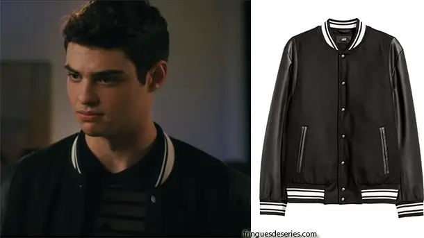 Dans The perfect date, une nouvelle comédie Netflix, Brooks Rattigan (Noah Centineo) va à la fête de Shelby avec une veste teddy noire que l’on trouve ici